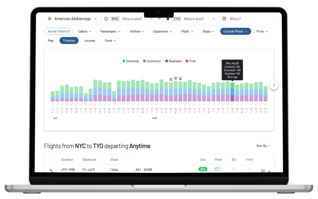 AwardFares är det ledande verktyget för att hitta bonusplatser på flyg. Sök efter tillgänglighet i realtid med flera olika program samtidigt och för 150+ olika flygbolag. Över 150 000 användare världen över.